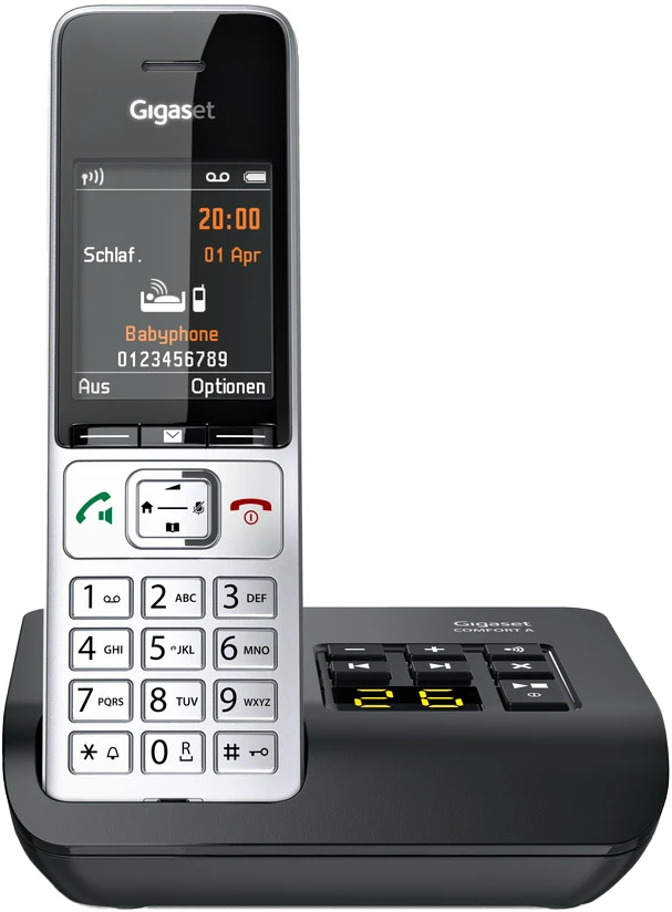 Immer voll informiert – auch wenn Sie einmal nicht erreichbar sind. Mit bis zu 20 Minuten Aufnahmezeit bietet der integrierte digitale Anrufbeantworter genug Platz für wichtige Nachrichten und sichert die Aufzeichnungen sogar bei Stromausfall zuverlässig. Wenn neue Nachrichten vorliegen, wird dies sowohl am Mobilteil, als auch an der Basisstation angezeigt. Abhören lassen sich die Nachrichten ebenfalls vom Mobilteil aus und – ganz bequem per Tastendruck – an der Basisstation. Sind Sie über einen längeren Zeitraum nicht zu Hause, nutzen Sie einfach die Fernabfrage-Option. Um den Anrufbeantworter ganz nach Ihren Wünschen zu konfigurieren, können Sie die Aufzeichnungslänge frei einstellen und eine individuelle Ansage aufsprechen.