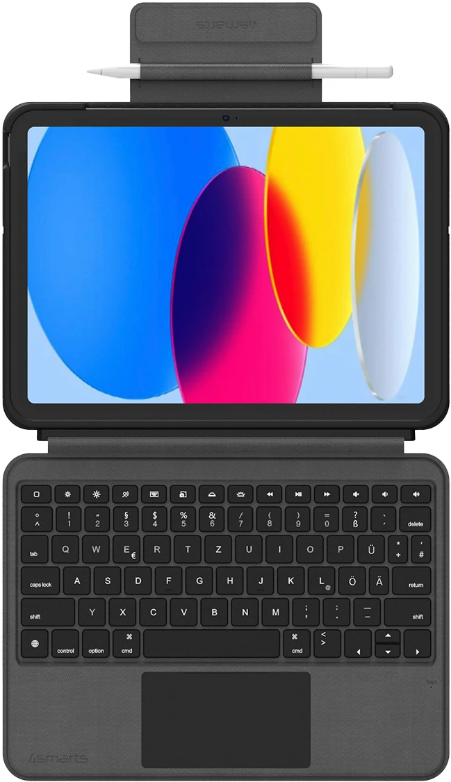 Die Smart Connect Tastatur mit QWERTZ Layout ist perfekt auf dein iPad 10.9″ abgestimmt und bietet intelligente Funktionen, die deine Produktivität steigern. Das herausragende Trackpad ermöglicht präzises Navigieren und nahtloses Multitasking direkt auf dem Bildschirm, ohne lästiges Hin- und Herwechseln zwischen Maus und Tastatur. Die obere Tastenreihe ist mit nützlichen Funktionstasten ausgestattet, die dir schnellen Zugriff auf häufig genutzte Funktionen bieten, von App-Starts bis zur Anpassung der Bildschirmhelligkeit – alles mit einem Tastendruck. Die Eingabe wird nahezu in Echtzeit erkannt, und die Auto Wake Up-Funktion sorgt für maximale Effizienz. Die Hintergrundbeleuchtung ermöglicht ein komfortables Tippen bei allen Lichtverhältnissen, während die integrierte Pencil-Halterung deinen Apple Pencil sicher aufbewahrt. Die iPad 10 Generation Hülle mit Tastatur bietet ein unschlagbares Gesamtpaket für deine Arbeits- und Kreativbedürfnisse.